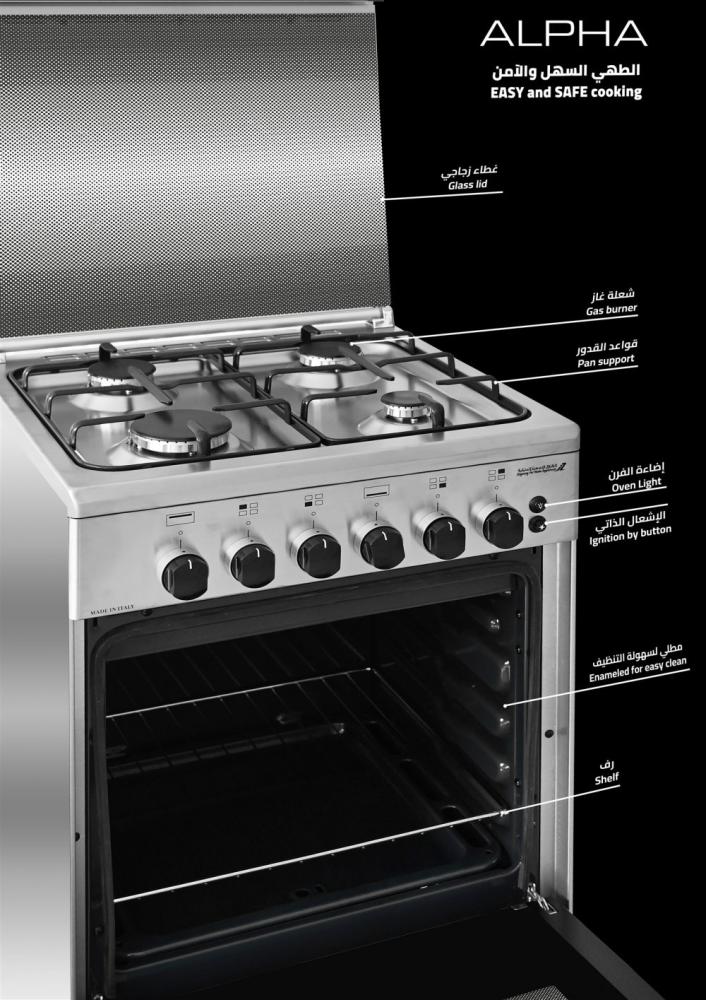 فرن جليم غاز 50*53، (4) عيون غاز، أمان تام إيطالي